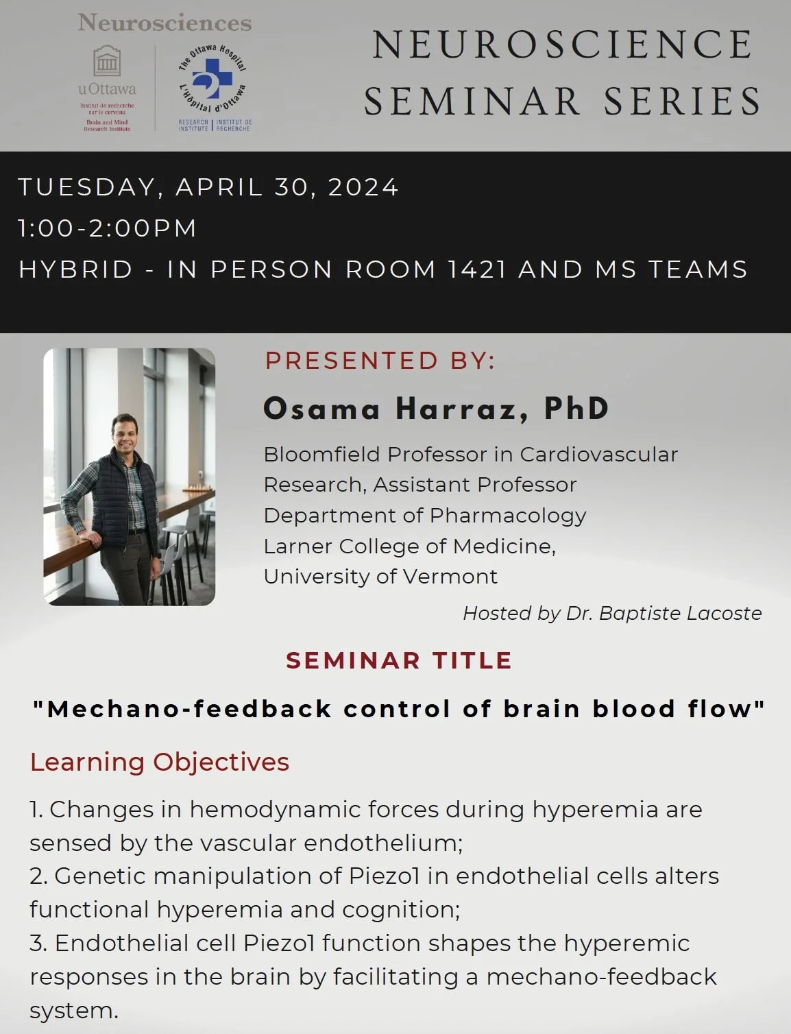 Osama presents virtually at the Research Center of CHU de Québec, Université Laval.