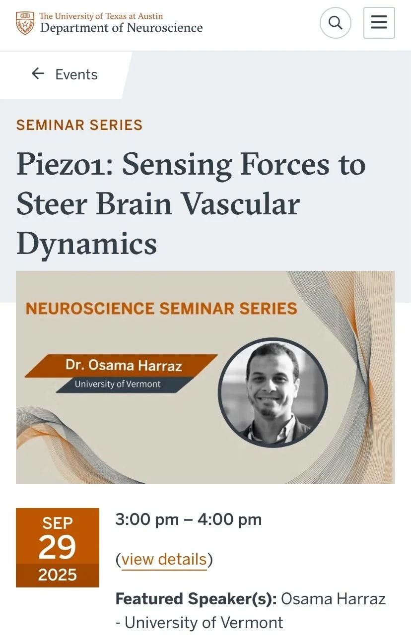 Osama visits the University of Texas Austin and presents the Department of Neuuroscience Seminar.