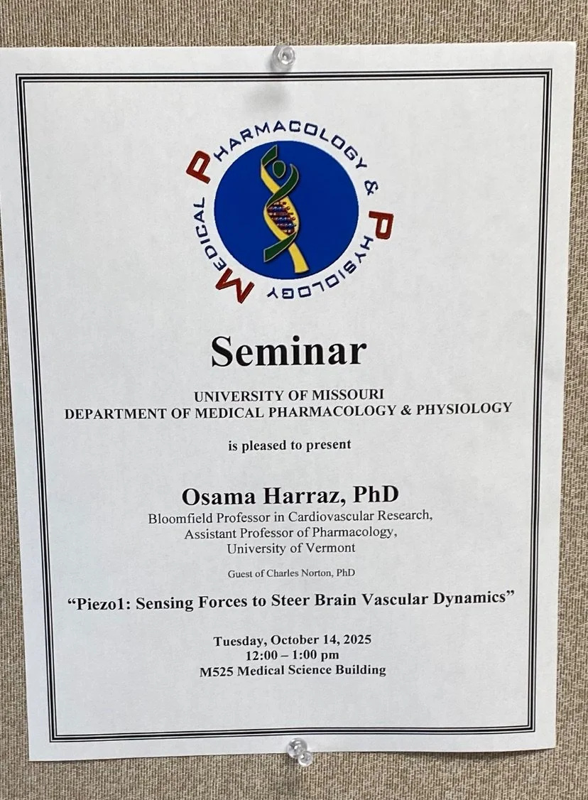 Osama gives the Medical Pharmacology and Physiology Seminar at the University of Missouri.